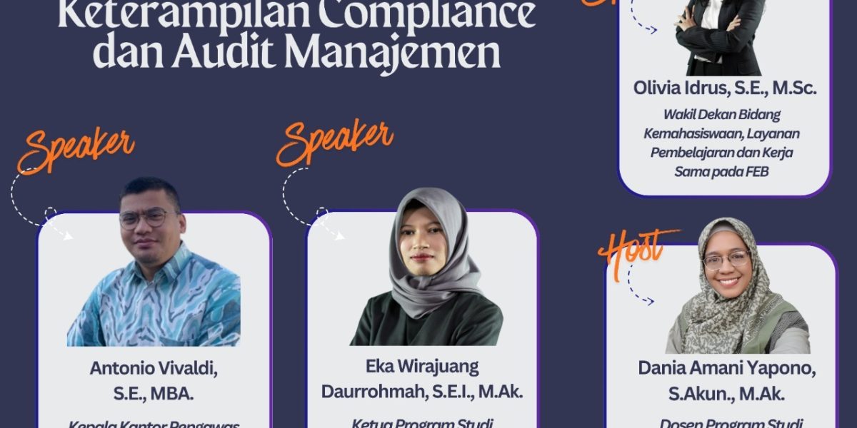 Read MoreUniversitas Terbuka — Program Studi Akuntansi, Fakultas Ekonomi dan Bisnis Universitas Terbuka (FEB UT), menyelenggarakan Workshop “Keterampilan Compliance dan Audit Manajemen” pada Sabtu, 20 Desember 2025, pukul 07.30–12.00 WIB, yang dilaksanakan secara daring melalui platform Zoom dan disiarkan secara langsung melalui YouTube FEB TV. Workshop ini diselenggarakan sebagai upaya pembekalan kompetensi profesional bagi mahasiswa, khususnya […]